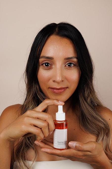 Mix a drop of Sunrise Glow with your favorite foundations to create a light coverage look.